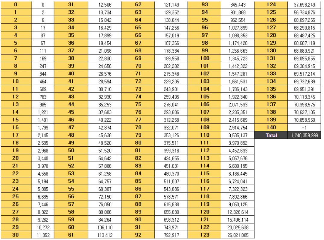 위 경험치 테이블은 가필드님 글에서 가져왔습니다